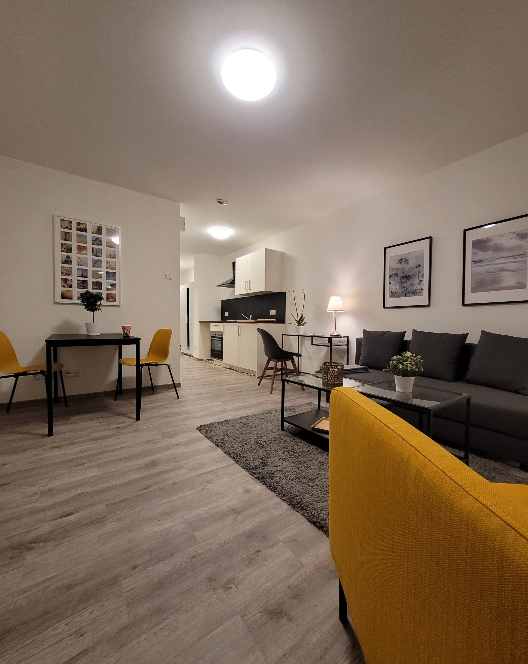 Unsere Wohnapartments sind alle mit einem eigenen modernen Badezimmer und zusätzlich einem separaten Schlafzimmer ausgestattet. Damit wird eine gemütliche Wohnfläche geschaffen, die Ihnen Platz und Rückzugsorte ermöglicht. Die Wohnapartments eignen sich somit auch für Homeoffice und längere Aufenthalte in den Wohnungen.