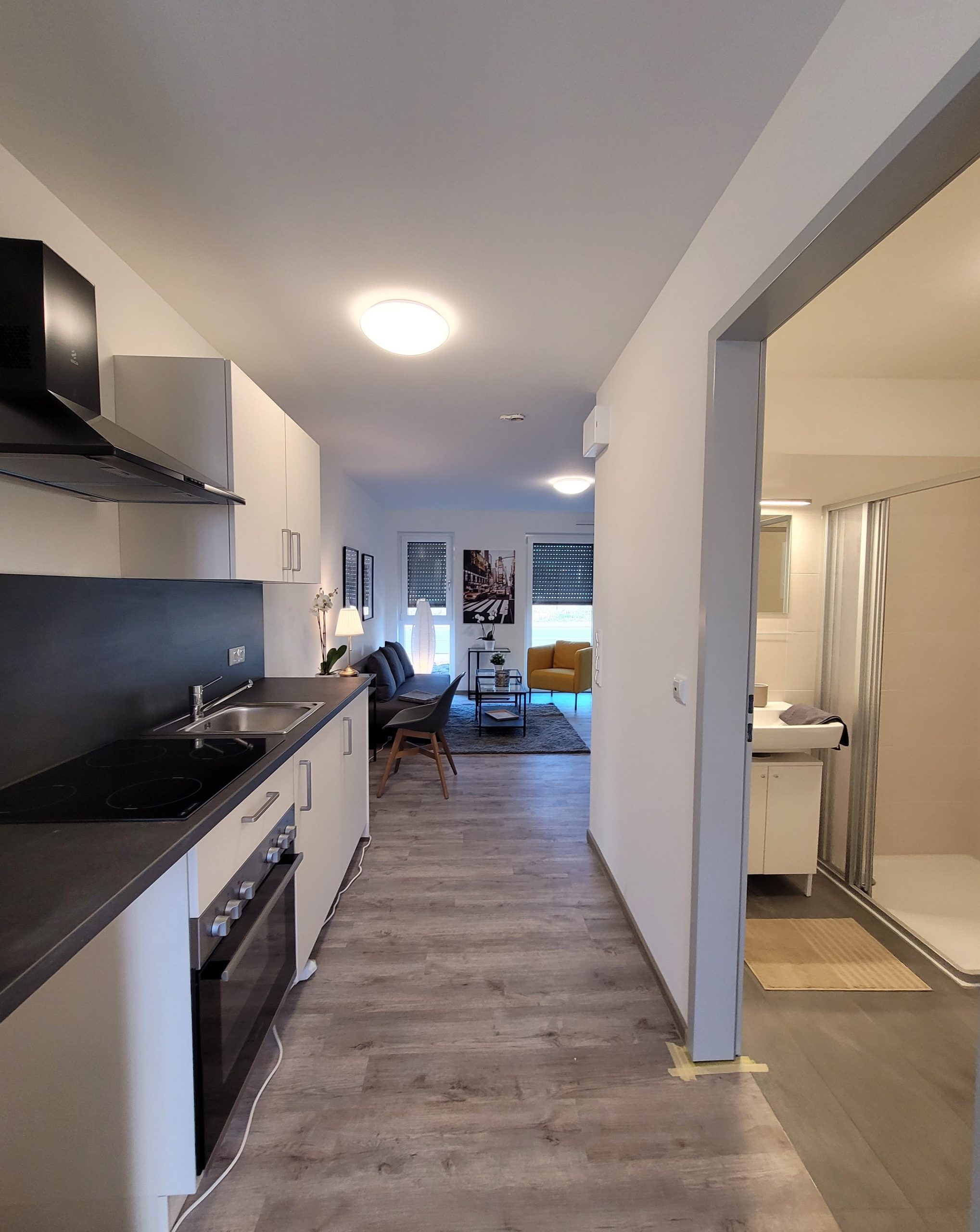 Unsere Wohnapartments sind vollausgestattet mit Designermöbeln sowie mit hochwertigen Einbauküchen.